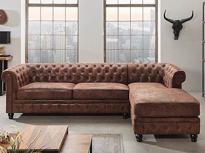 s rohovou sedacou súpravou 40611 CHESTERFIELD v prekrásnom antik hnedom