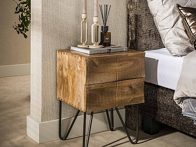 Okrúhly nočný stolík Wave je vyrobený z masívneho mangového dreva s pieskovou povrchovou úpravou. Okrúhly dizajn je doplnený vertikálnym vlnovým vzorom po celom obvode. Nočný stolík má dve otvorené priehradky a jednu zásuvku na odkladanie rôznych predmetov. Nočný stolík je súčasťou série Wave.Nočný ..